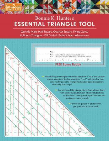 The pattern includes easy instructions, full color photos and instruction on using my Essential Triangle Tool for the border units. Traditional rotary cutting hints included as well for folks who don't have access to the Essential Triangle Tool. But while you are here - why don't you pick one up?